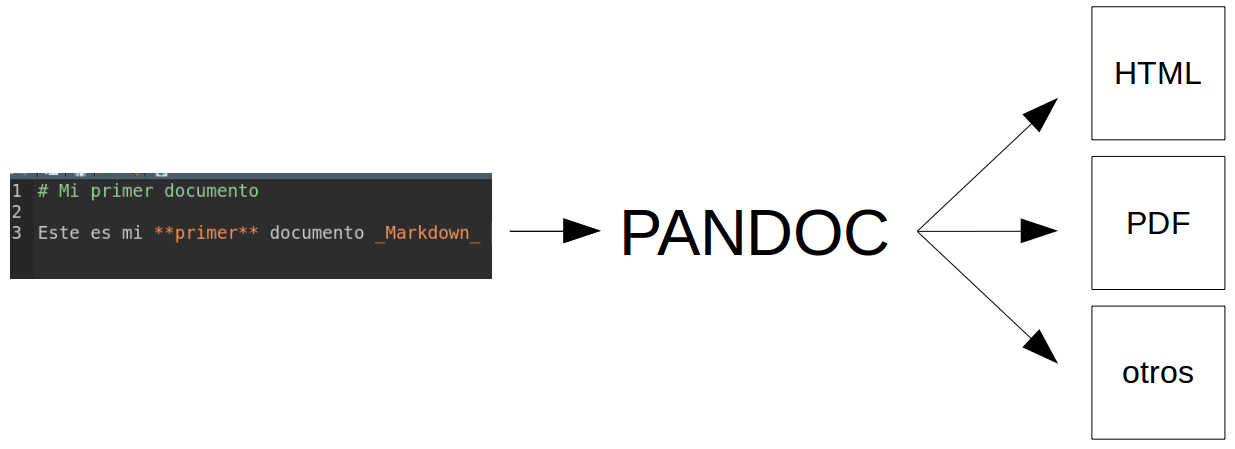 Pandoc es la herramienta que se encarga de realizar esta conversión de markdown a HTML o PDF, permitiéndonos visualizar nuestro documento con el formato deseado. Este programa funciona como un puente entre el texto plano que escribimos en markdown y el documento final que se renderiza, asegurando que todas las marcas de edición se apliquen correctamente para una presentación óptima.