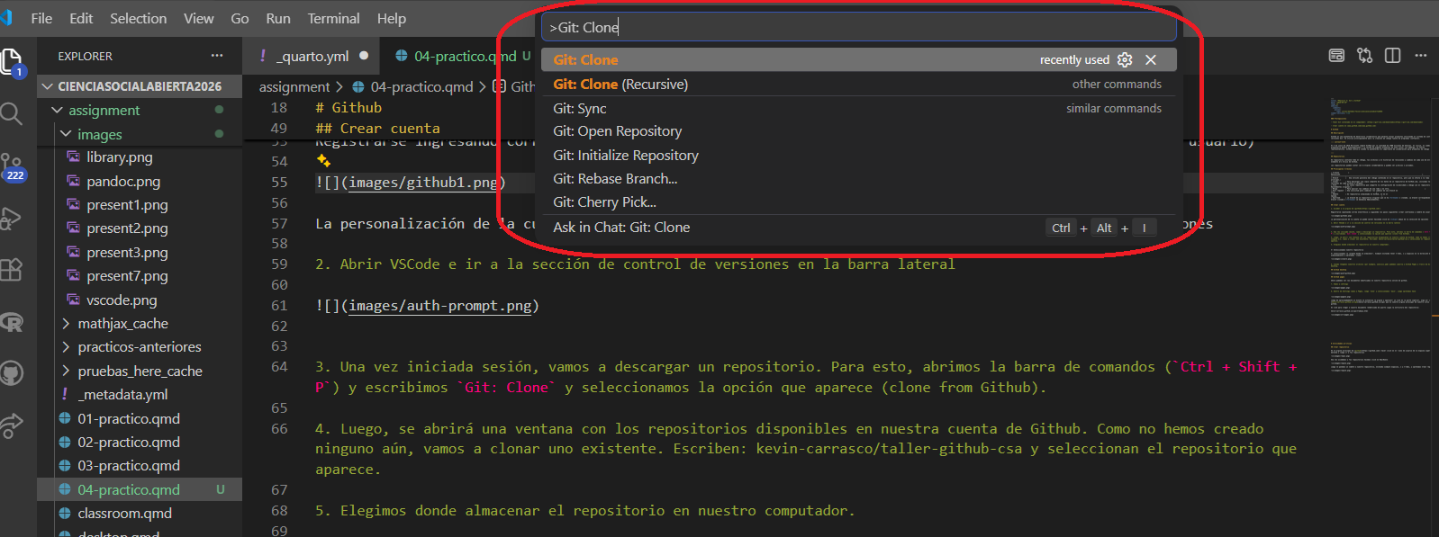 tarea.qmddentro de esta nueva branch y hacer commit de los cambios.Sincronizar los cambios y luego hacer un pull-request.