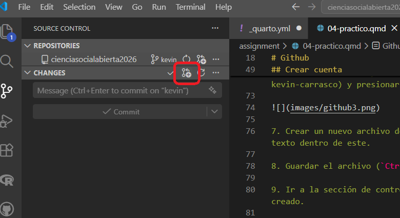 Ctrl + S).Ir a la sección de control de versiones en la barra lateral, donde aparecerá el nuevo archivo creado.