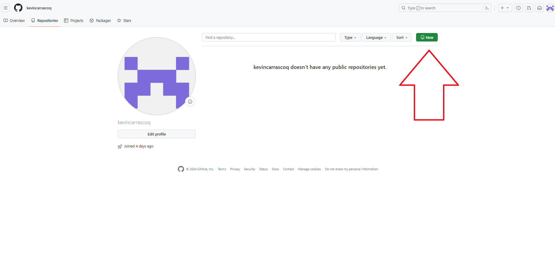 - Una vez accedemos a Tus repositorios hacemos click en New/Nuevo
