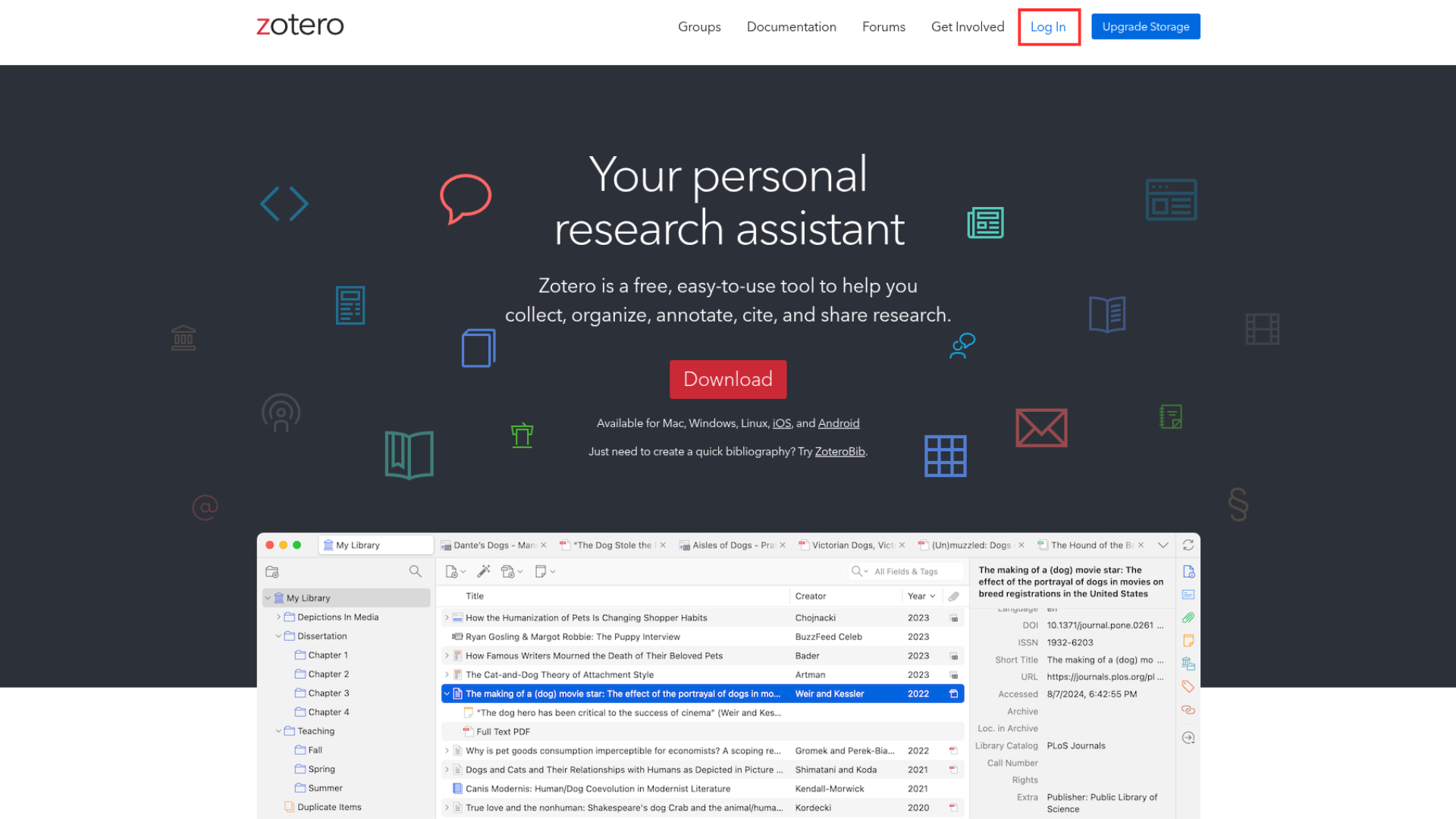 Primero, debemos entrar a zotero.org y clickear en “Log in” en la esquina superior derecha.